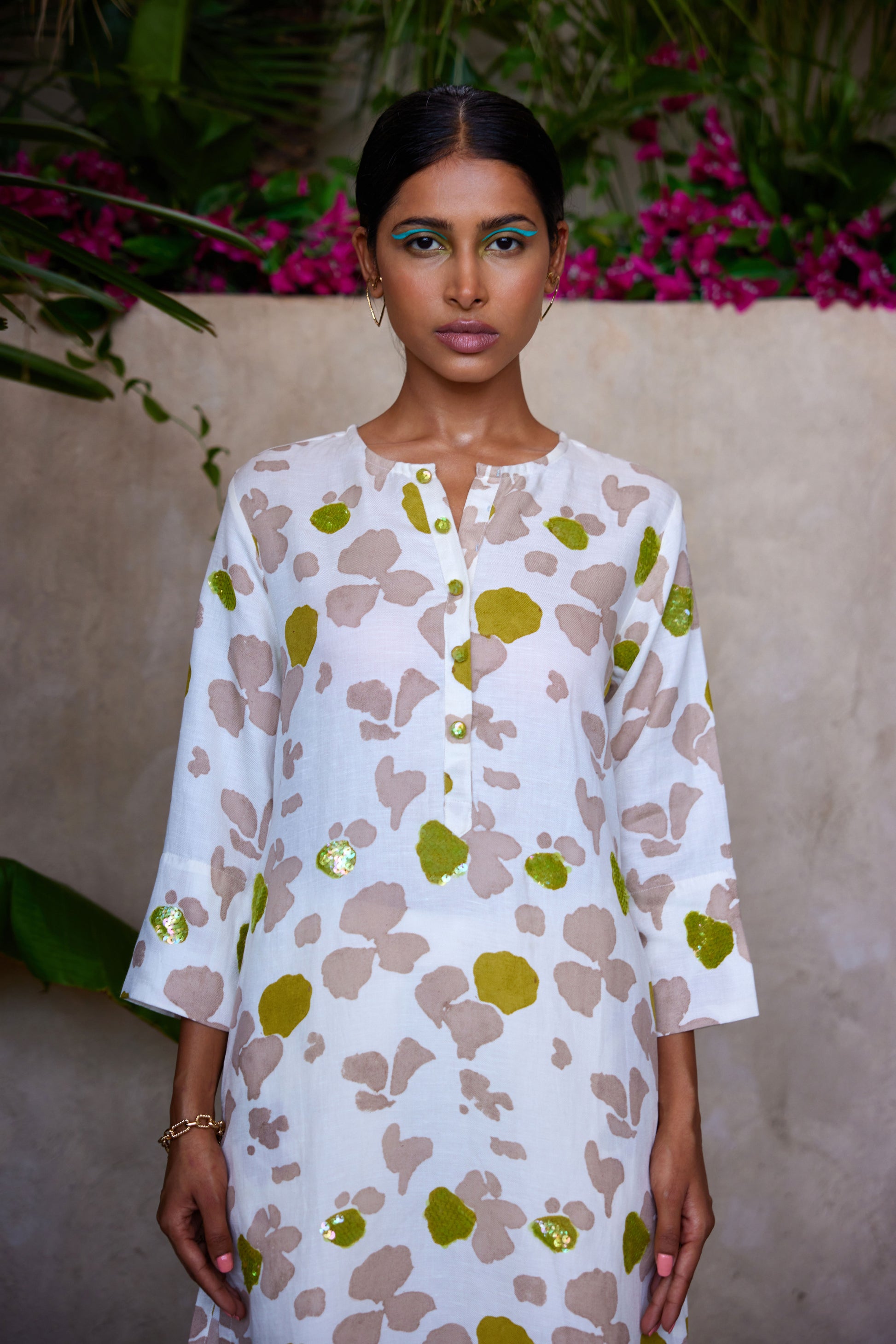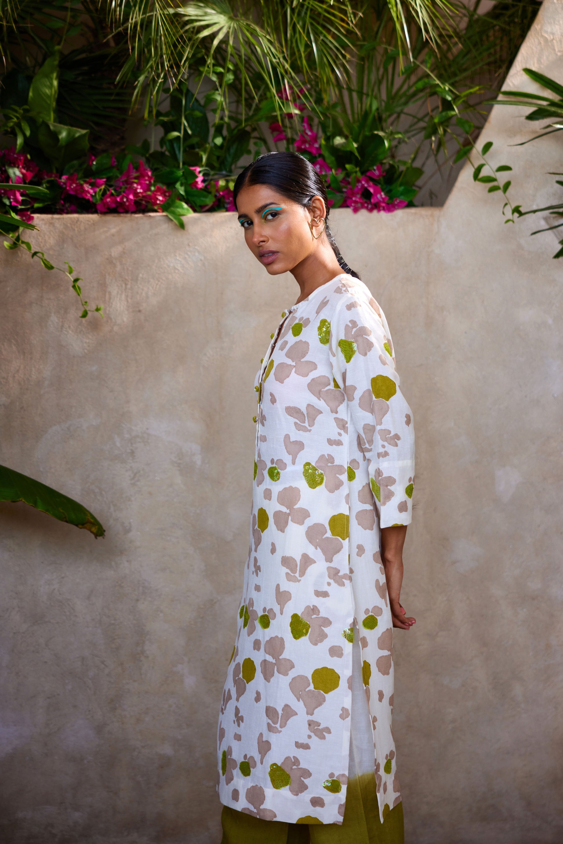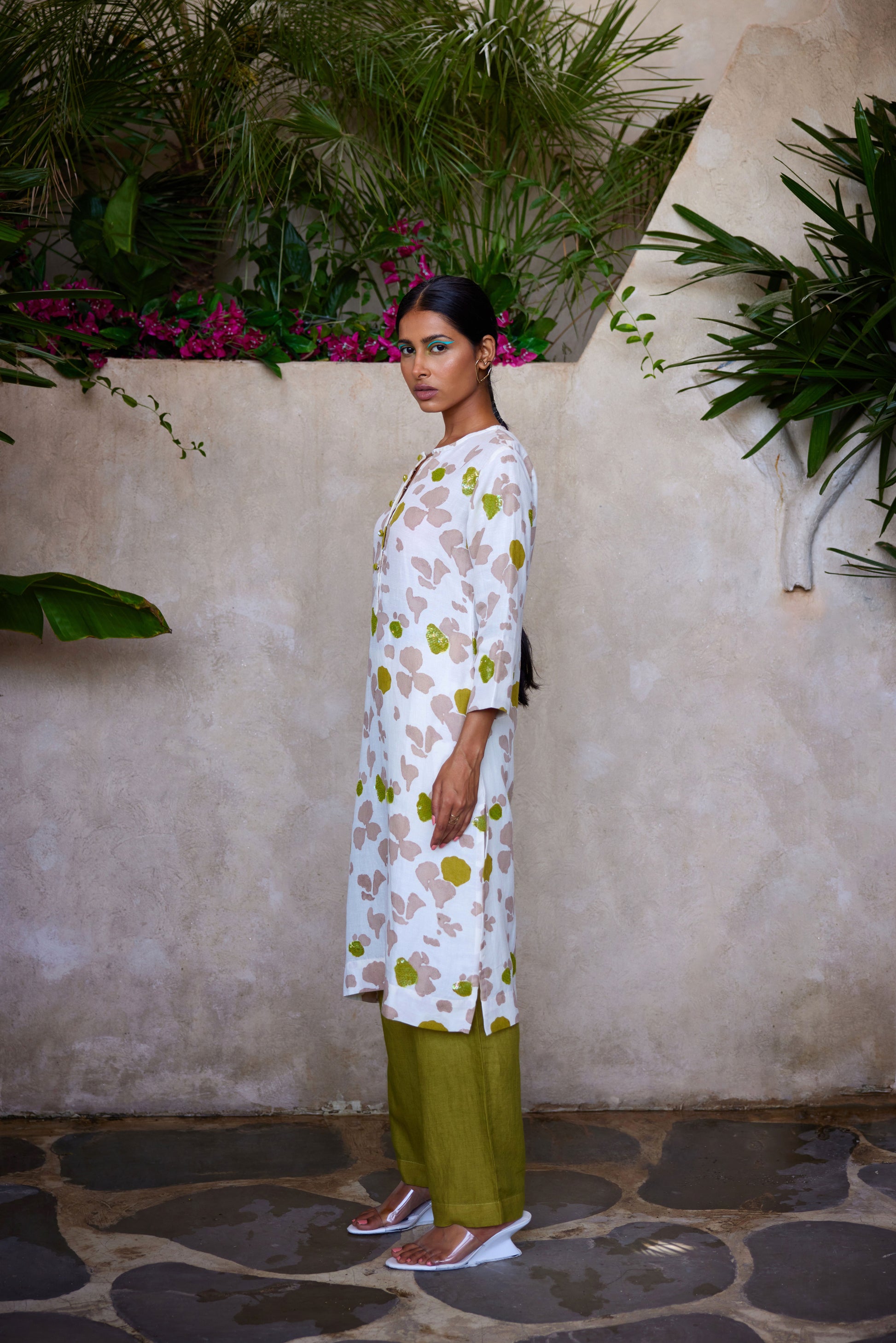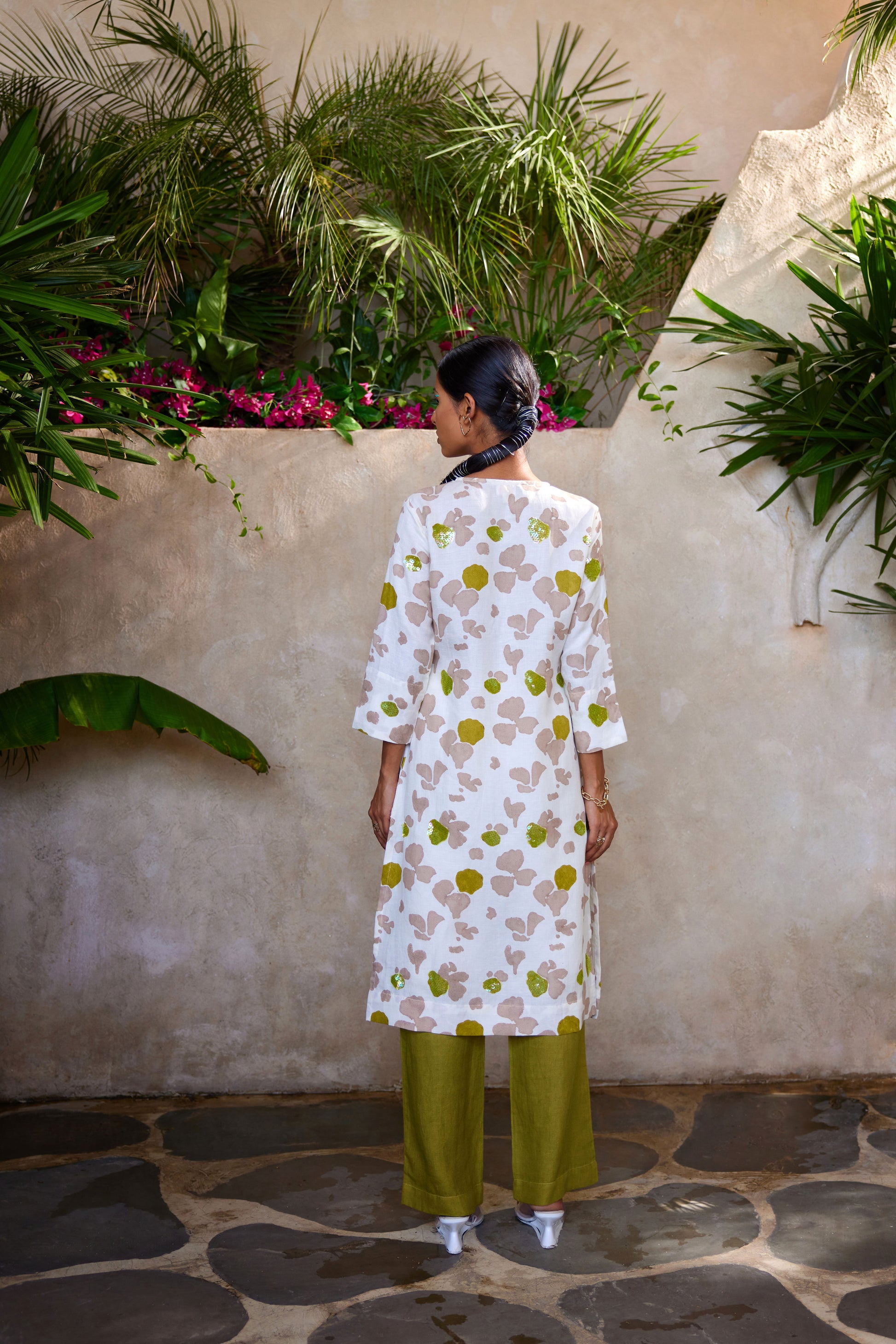 our Linen set is all ready to make you look unique with it's charming embroidery and handblock print. let the ombre pants do the magic.