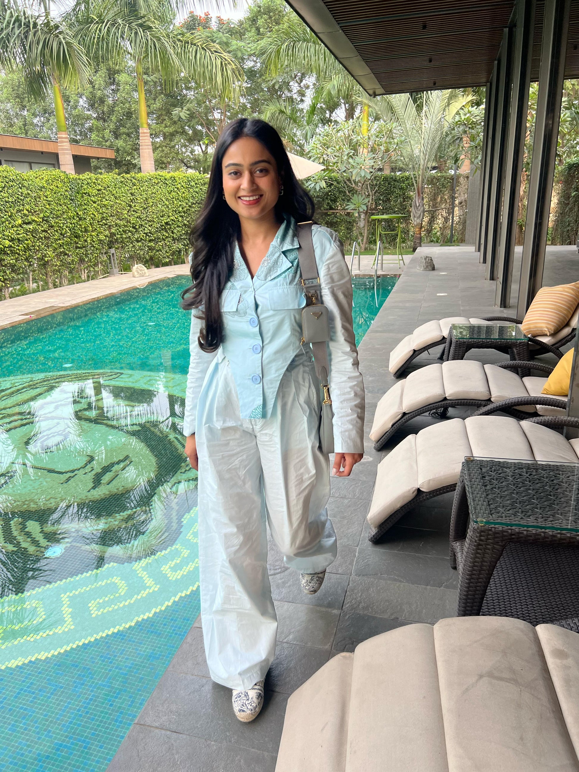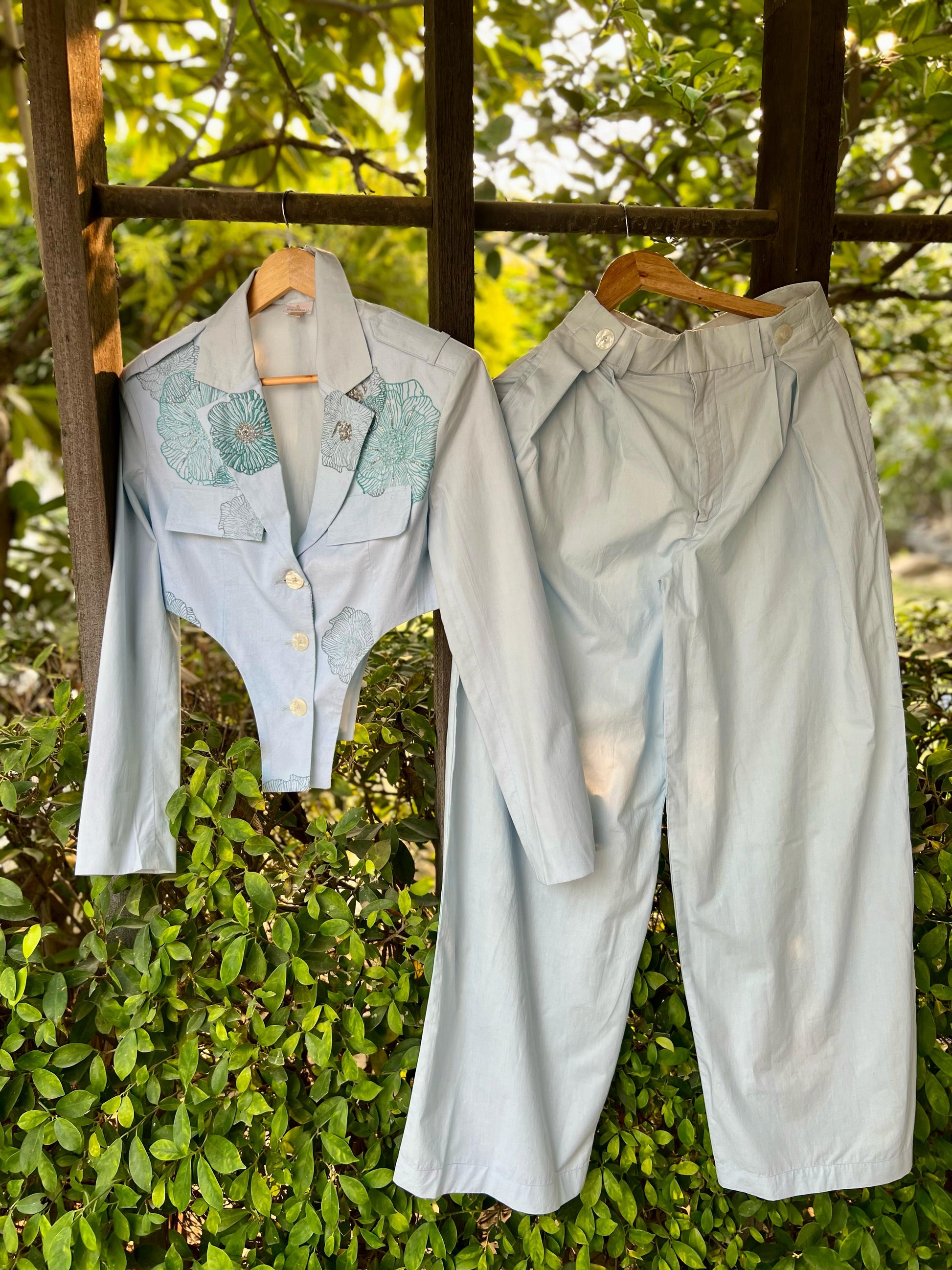 Our very charming Montana Embroidered Blazer Set with broad ultra fashion pants.